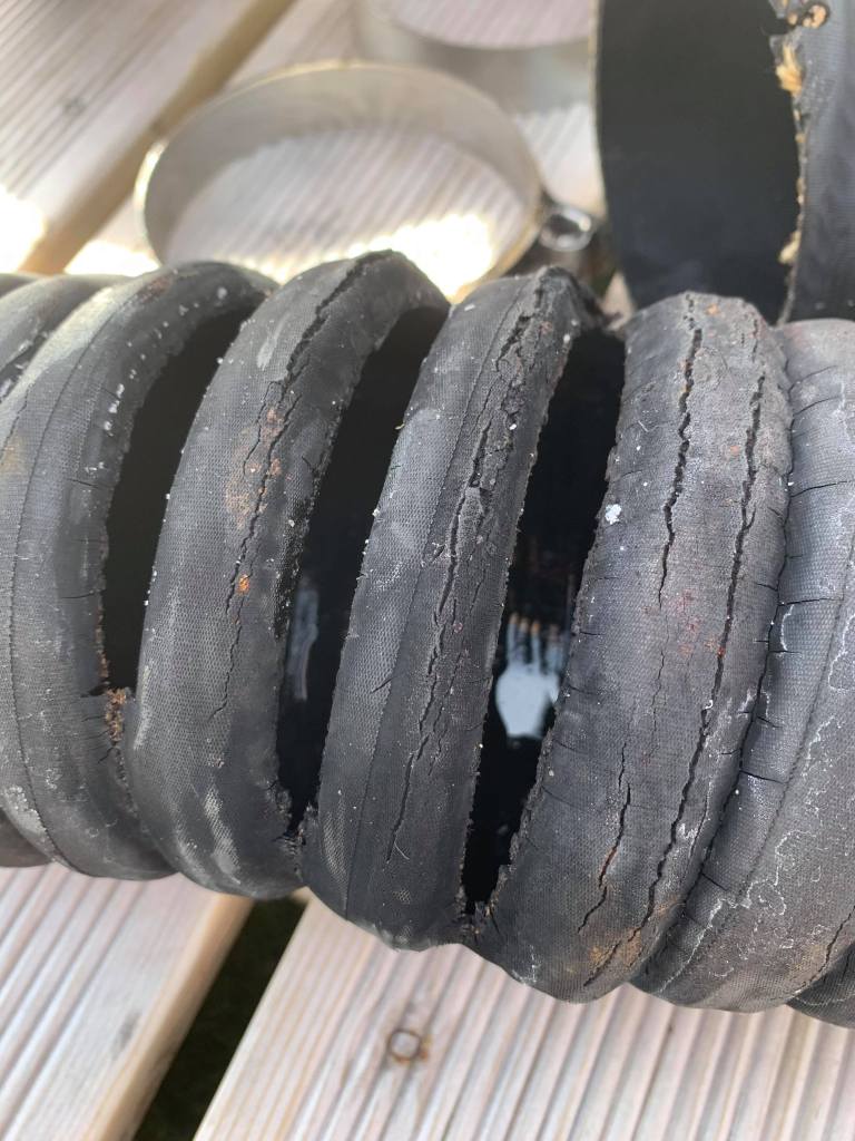 Etter noe leting, viste det seg at det ene eksosrøret var i stykker. Kjølevannet fra motoren gikk rett inn.
