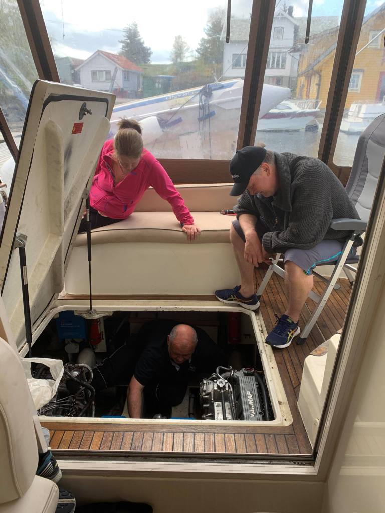 Dette burde stresse livet av oss, men vi kunne ikke forstå hva som var galt. Motorene er overhalt, vi har hatt service og alle indikatorer på panelet sier at motorene er som de skal være. Ikke kunne vi se hvor vannet kom fra heller.