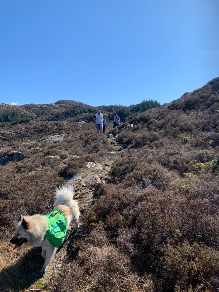 Vi tok turen opp til Varden, gjennom ei kunstløype ( denne var merkelig/kunstnerisk..) videre utover toppene til Flona. Her var det nydelig utsikt mot havet og øyene utfor. Det ble en fin rundtur i et herlig shorts og t-skjortevær.