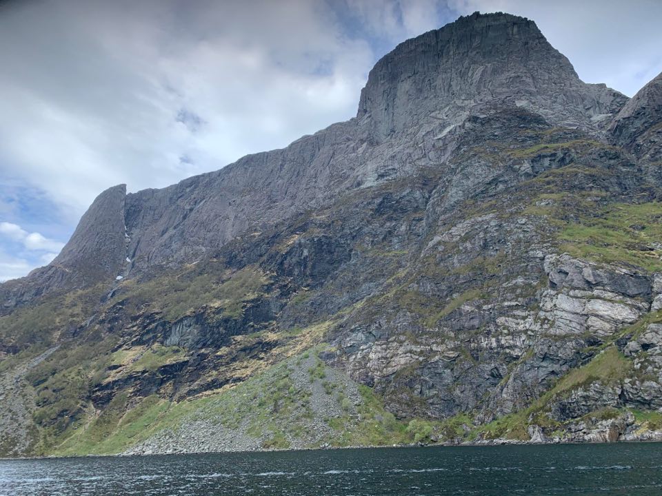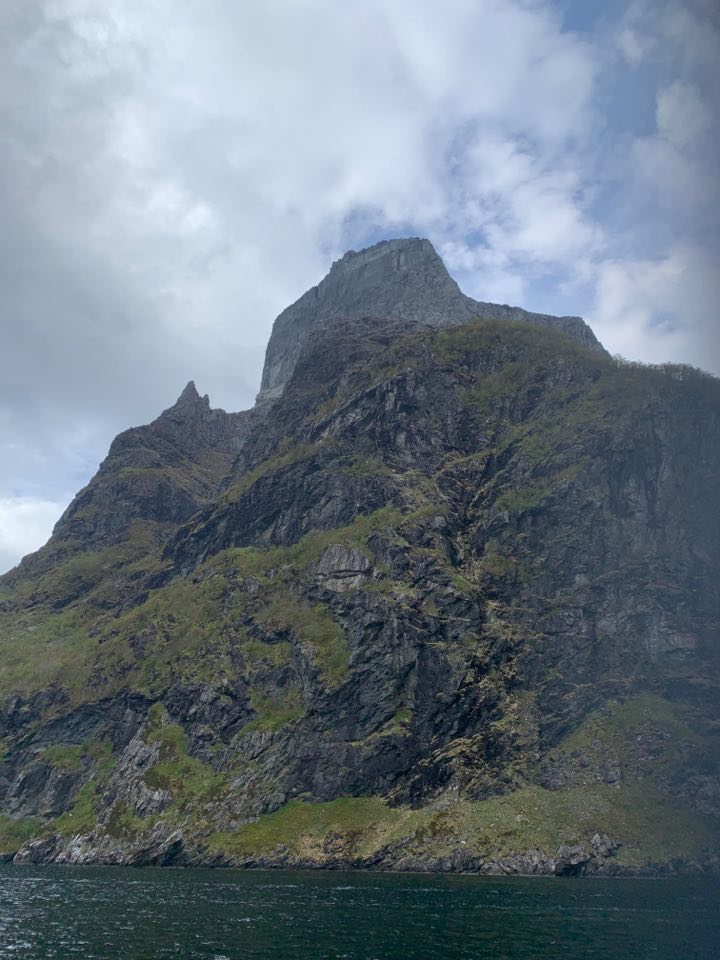På vei til Måløy passerte vi Hornelen, Europas høyeste sjøklippe. Her er det 860 m rett ned. Jeg er veldig glad i å gå fjelltur, men denne så heftig ut.
