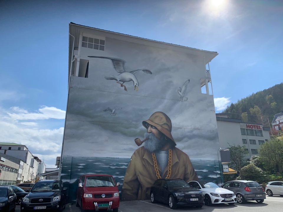 Vi la inn til Måløy. Stor Gjestehavn, men litt urolig sjø. vi hadde en god pause med en liten tur innom butikkene og for å se oss om. Fin gatekunst hadde de, men vi ble ikke målløs av å være i Måløy. Kanskje det var iveren etter å komme oss videre eller bølgeskvulpet som gjorde det, ikke vet jeg. Vi fyllte diesel og vann og satte kursen mot Silda.