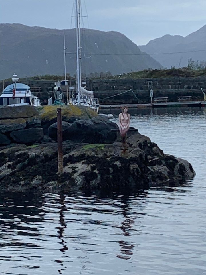 Silda har vi hørt mye fint om. For ei havn. Jeg forstår godt at folk benytter denne havna til ventehavn før de runder Stadthavet. I det vi kommer inn i selve havna er det til og med en havfrue som tar oss vel imot.