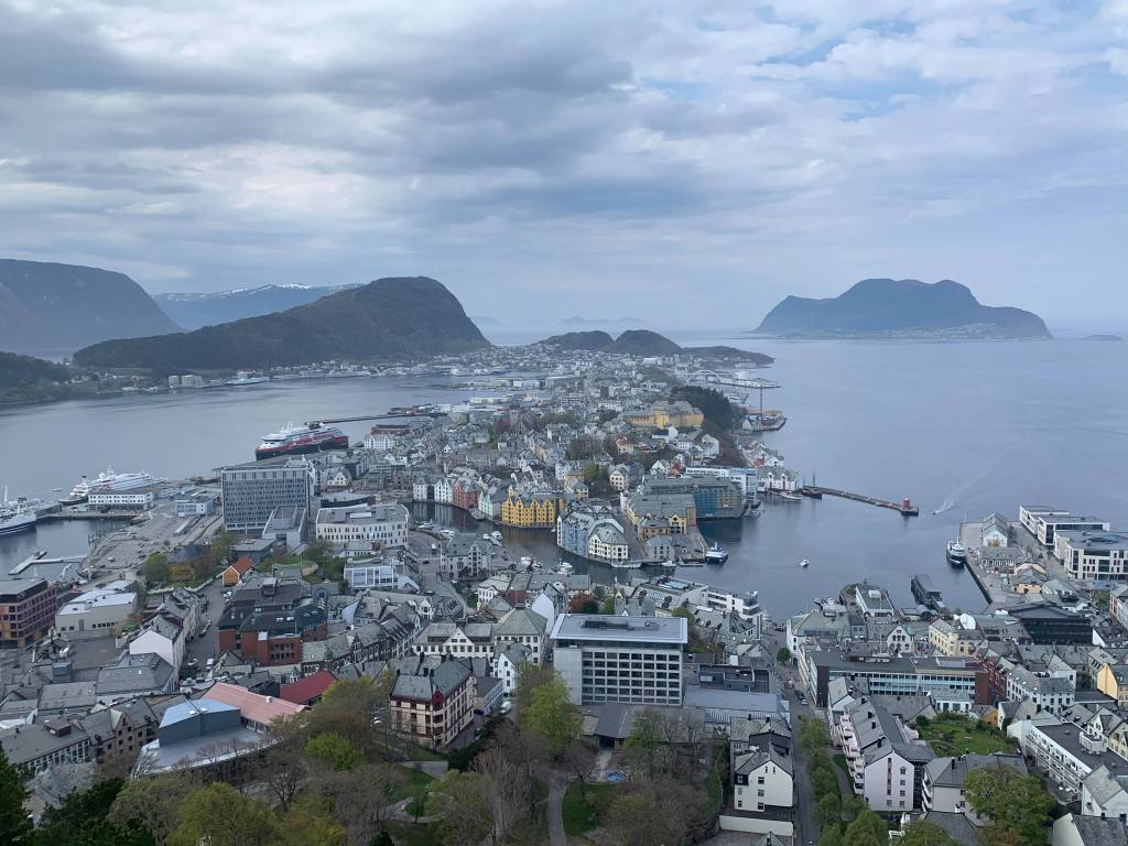 Turen gikk innom Ålesund. Jeg har faktisk aldri vært i Ålesund før, men det blir ikke siste gang. For en flott by!! Vi hadde en nydelig by-tur til byfjellet Aksla. Etterpå fikk vi med oss «niste» til turen over Hustadvika. Herlig med ferdiglaga pizza 😉