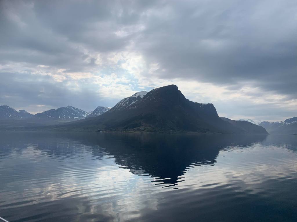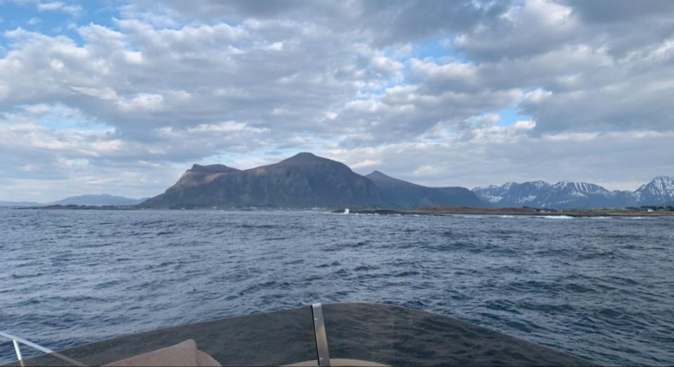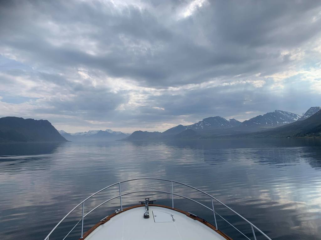 Vi tok fatt på Hustadvika med fulle tanker. Det var litt roligere nå. Det var også herlig temperatur i luften og nydelig å sitte på fly-bridgen.