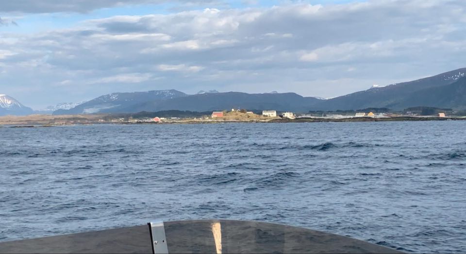 Med pizza ombord og føtter som var møre etter trappene til topps, tok vi avgårde nordover, over Hardøyfjorden. Det ble etterhvert høye bølger her også, så vi tok en pause i Bud. Her ville vi bunkre, men det var ikke mulig.