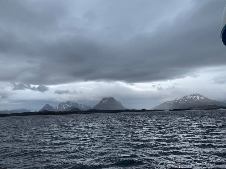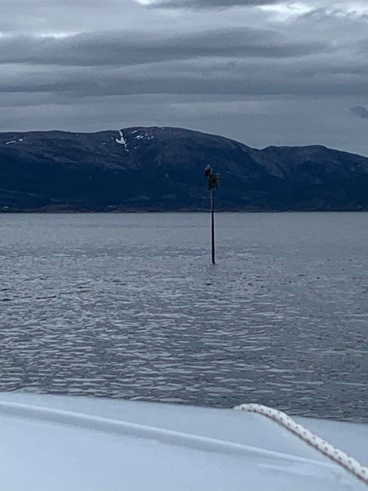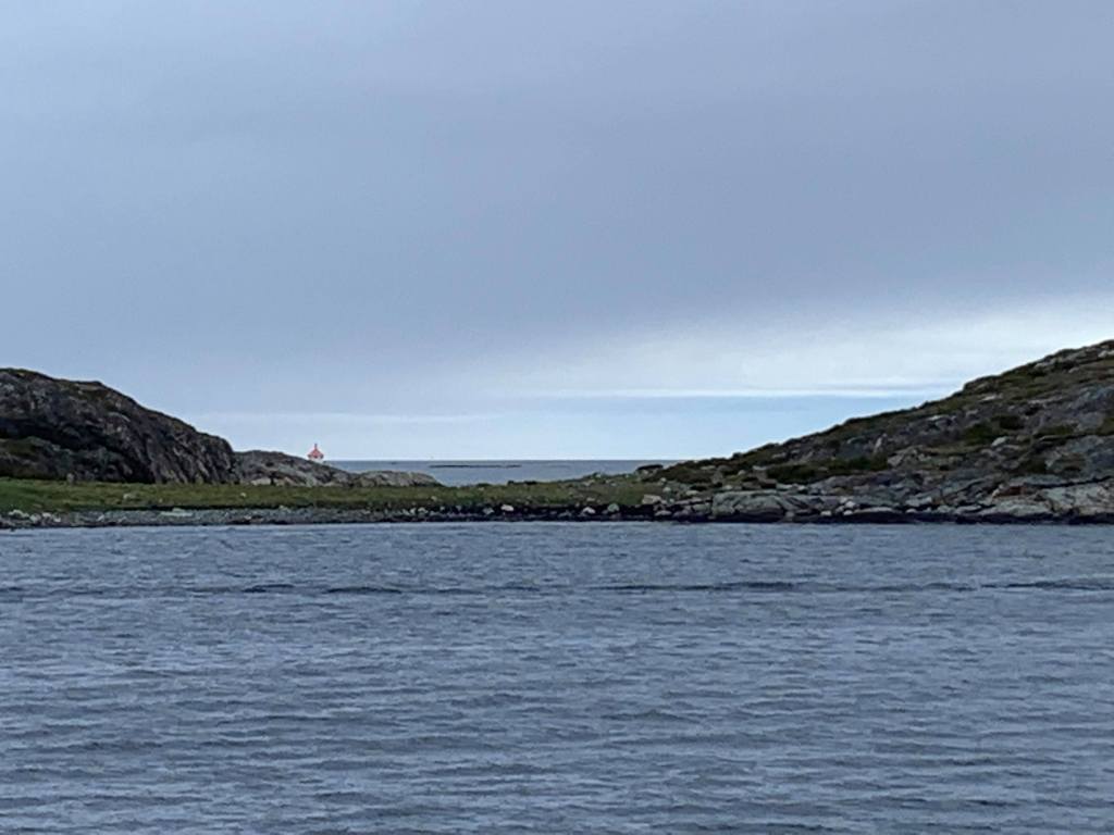 Vi la kursen mot Trondheimsleia i regn. Det var små glimt av sol. Flatt hav hele turen!! Vi har vært skikkelig heldige med været, må jeg si.
