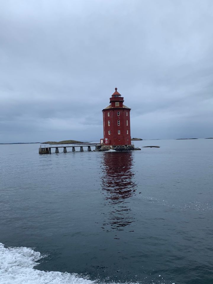 Midt i leia fant vi Kjeungskjæret fyr. Dette er det eneste åttekantede fyrtårnet i Norge. Tårnet kan du leie hvis du vil bo nært naturen (plass til 6 personer).