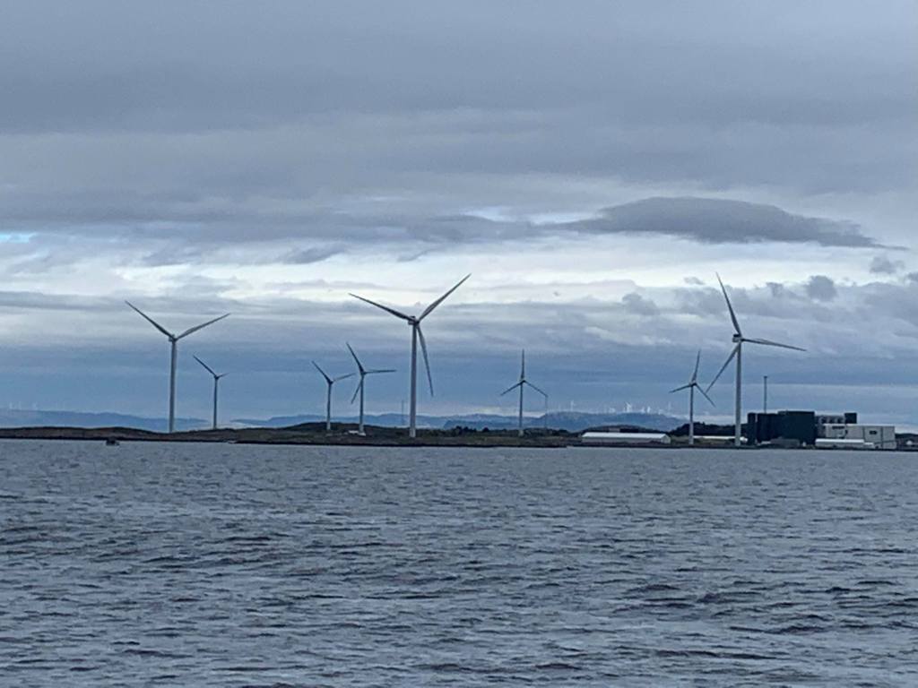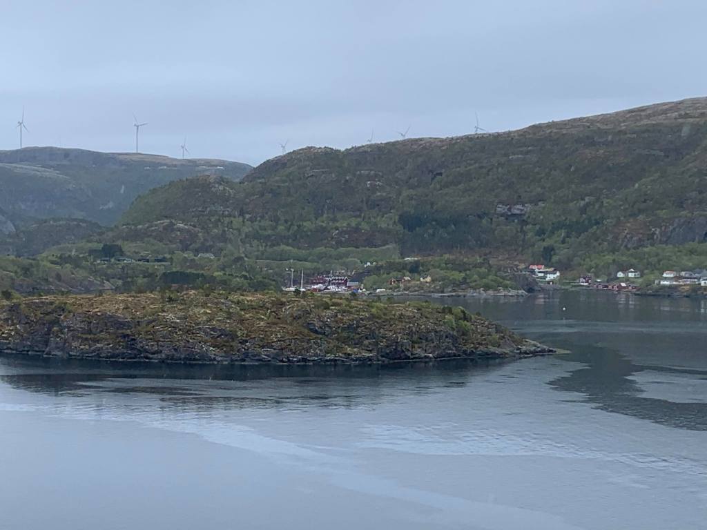 Rett før Valersundet kom vi til en ny vindmøllepark. Da vi studerte fjellene rundt, så vi at det var store og mange vindmølleparker her i Trøndelag.