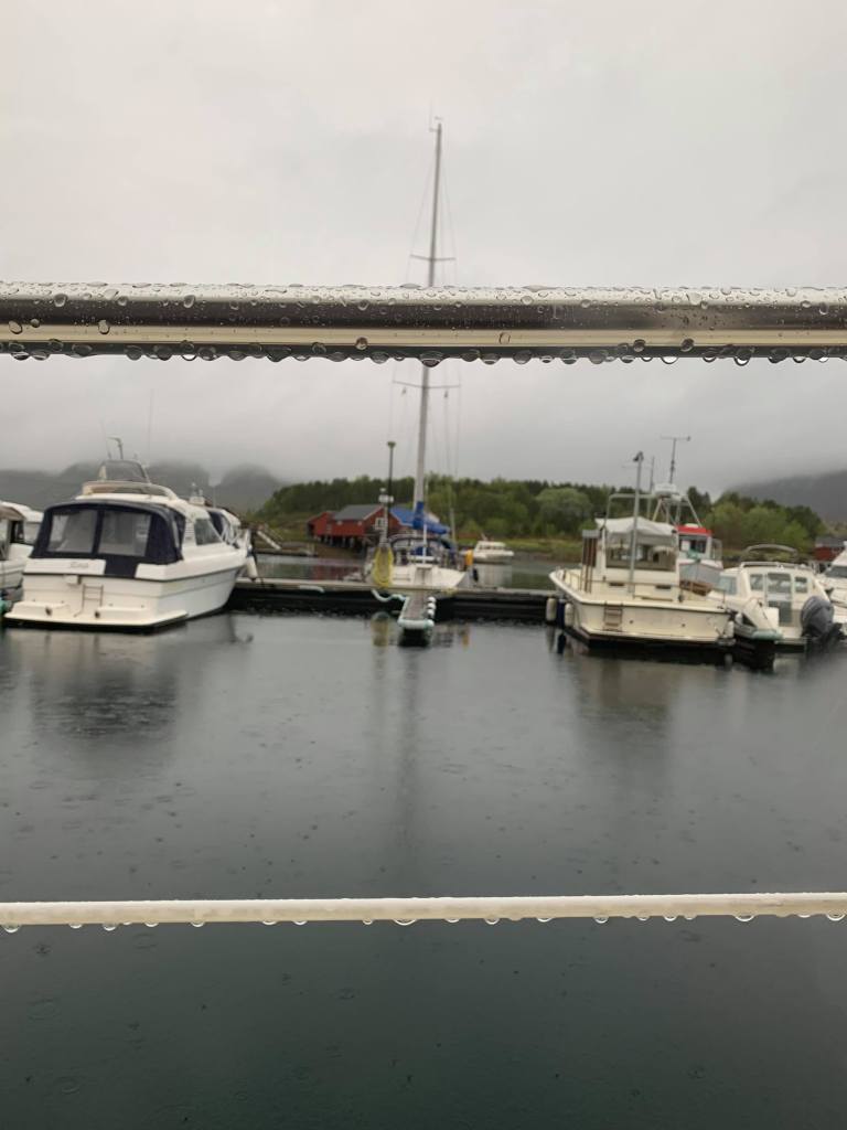 Vi svingte inn mellom Stokkøya og Stokksund og fant en fredelig og rolig gjestehavn. Kuringvågen. I sildefiskets storhetstid låg det tett i tett med båter her. Her er vi skjermet mot alle vinder.
