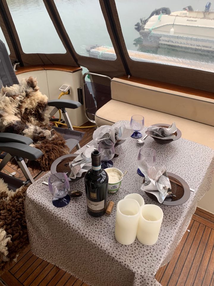 Brønnøysund ble havnen vi søkte ly i for regn, vind og for å fylle opp matskapet og bunkre. Alt var bare rett over gata 😊 Noen hadde hjemmekontor og andre slappet av med film eller annen kos. Rett og slett en «halvdaue» dag.