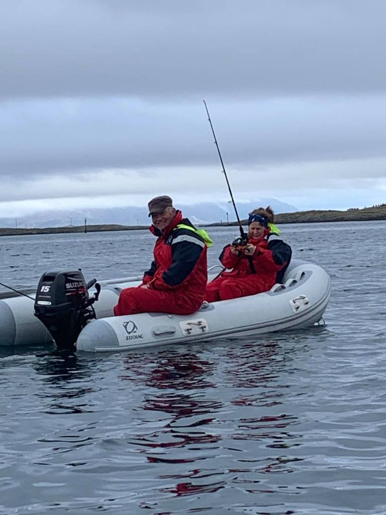 Det ble til at vi måtte ut og fiske. Geir har ny fiskestang og jeg har lovet å lage fiskesuppe til alle hvis vi får noe.