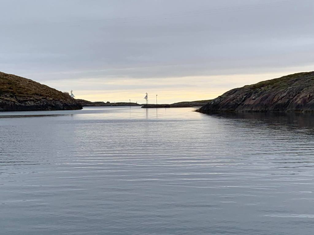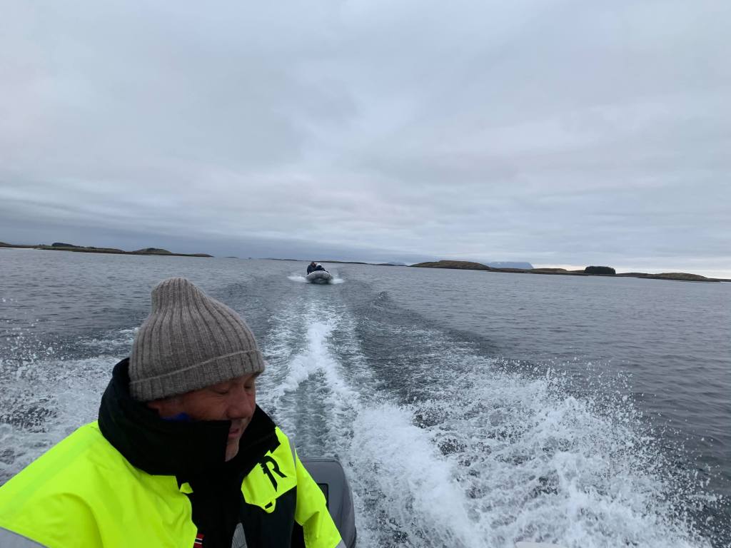 Med kaffe og sjokoladebolle seig vi utover. Det var overskyet, men flatt hav. Første stoppen var Ylvingen.