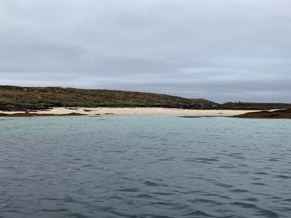 Etter festmåltidet, ja, det ble det….Kirsti hadde laget sjokoladekake til dessert…tok vi oss en jolletur rundt holmene. Det var flott. Hvite strender, nydelige holmer og smale sund. Vi så mot Vega i sør og Lovund i nord.