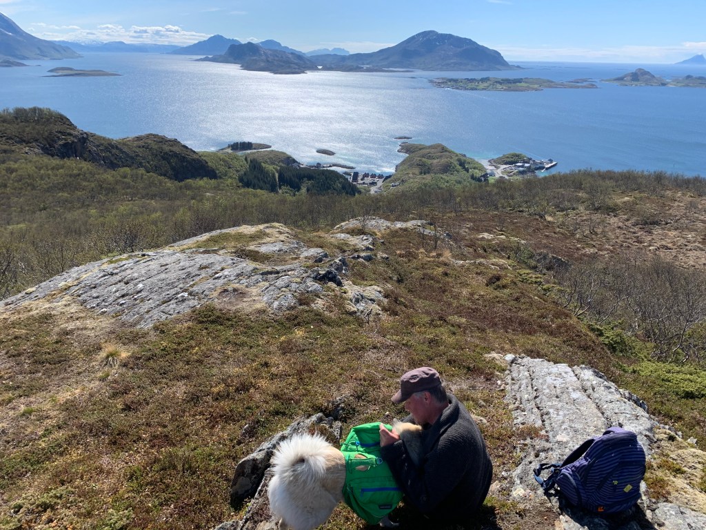 Vi ble liggende på grunn av vinden. Det første vi tenkte på var å ta oss en topptur for å få oversikt over den flotte skjærgården rundt.