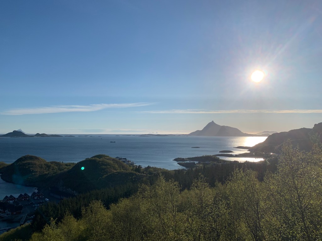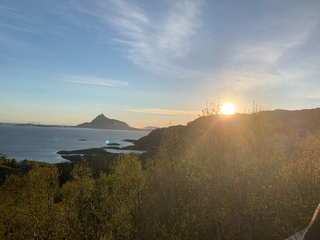 Imorgen skal vi sove lenge og godt.. så bærer det over Polarsirkelen. Den er markert ved øya Vikingen litt nord for Tonnes som vi er nå.