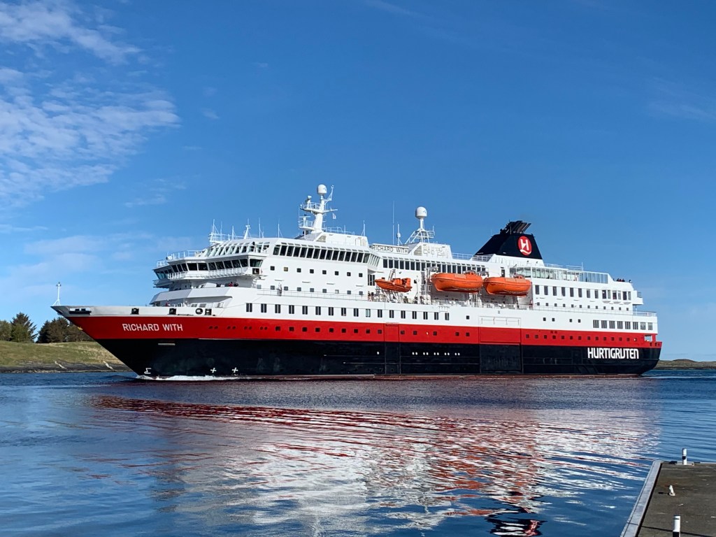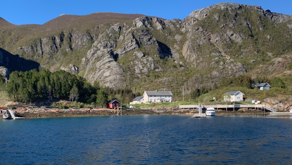 I det vi skulle kaste loss, kom Hurtigruta sigende rundt neset. Et majestetisk syn i et smalt sund. Vi vinket og de tutet tilbake. Hurtigruta reklamerer for verdens vakreste sjøreise langs norskekysten. Vet du…det tror jeg faktisk man kan få hos de 😉