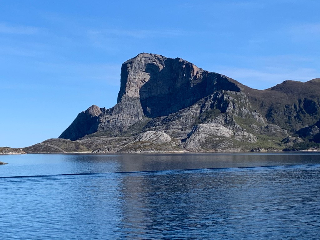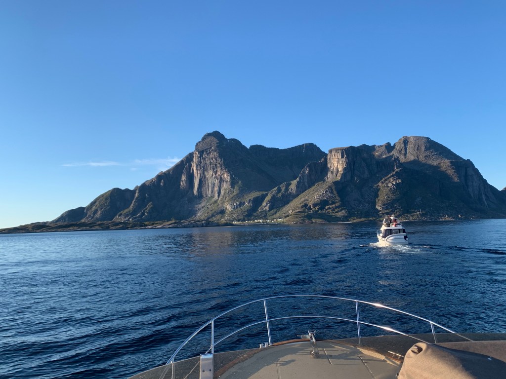 Glade og spente reiste vi fra Selsøyvik og mot Rødøyløva. Det var sol i dag også. Det luktet av kaffe og solkrem på flybridgen. Det var ikke så lange turen før vi så «løva» der fremme.