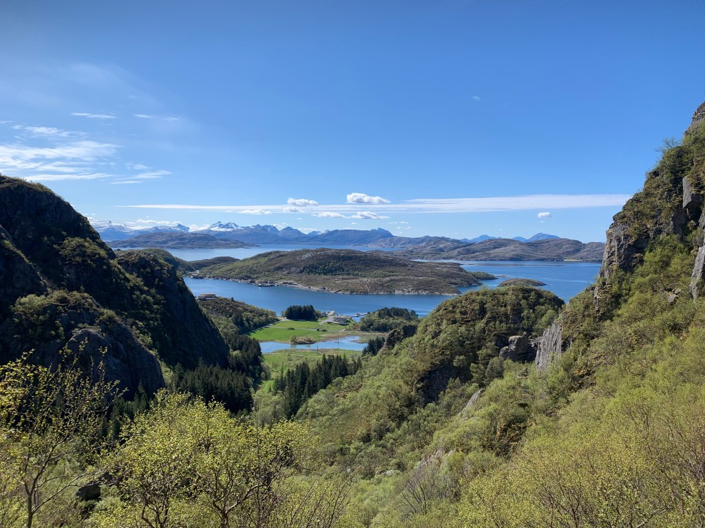 Lunsjen ble inntatt i spektakulær natur med verdens fineste utsikt. Jeg overdriver ikke. Da magene var møre nok, sullet vi oss videre.
