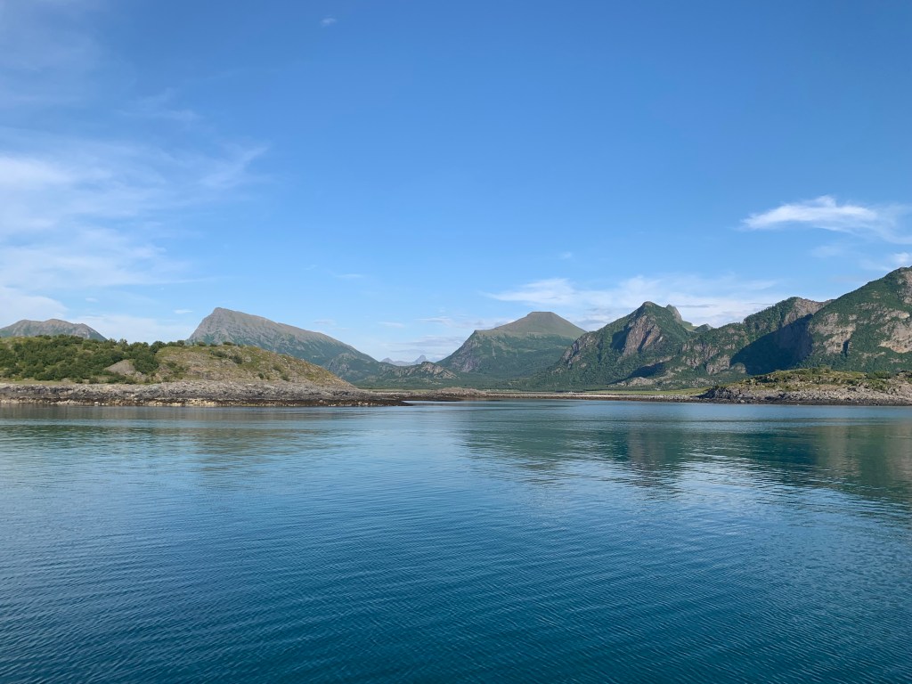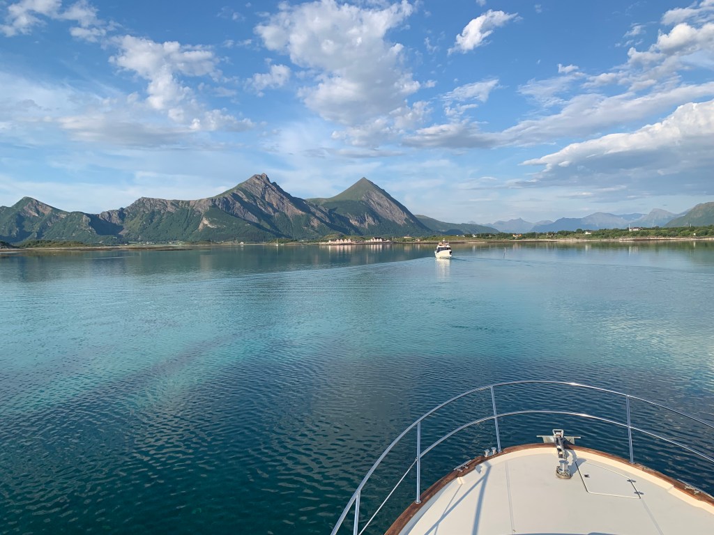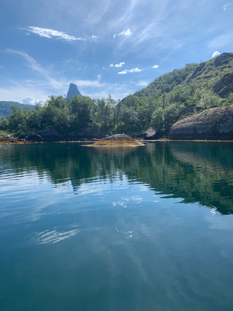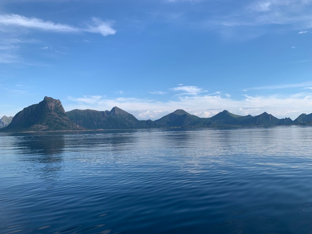 Vel tilbake i båtene, trakk vi ankeret og satte kursen sørover, over speilblankt hav, mot Steigen.