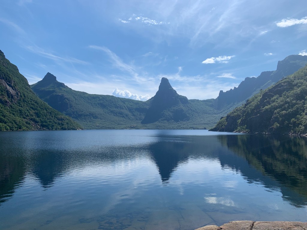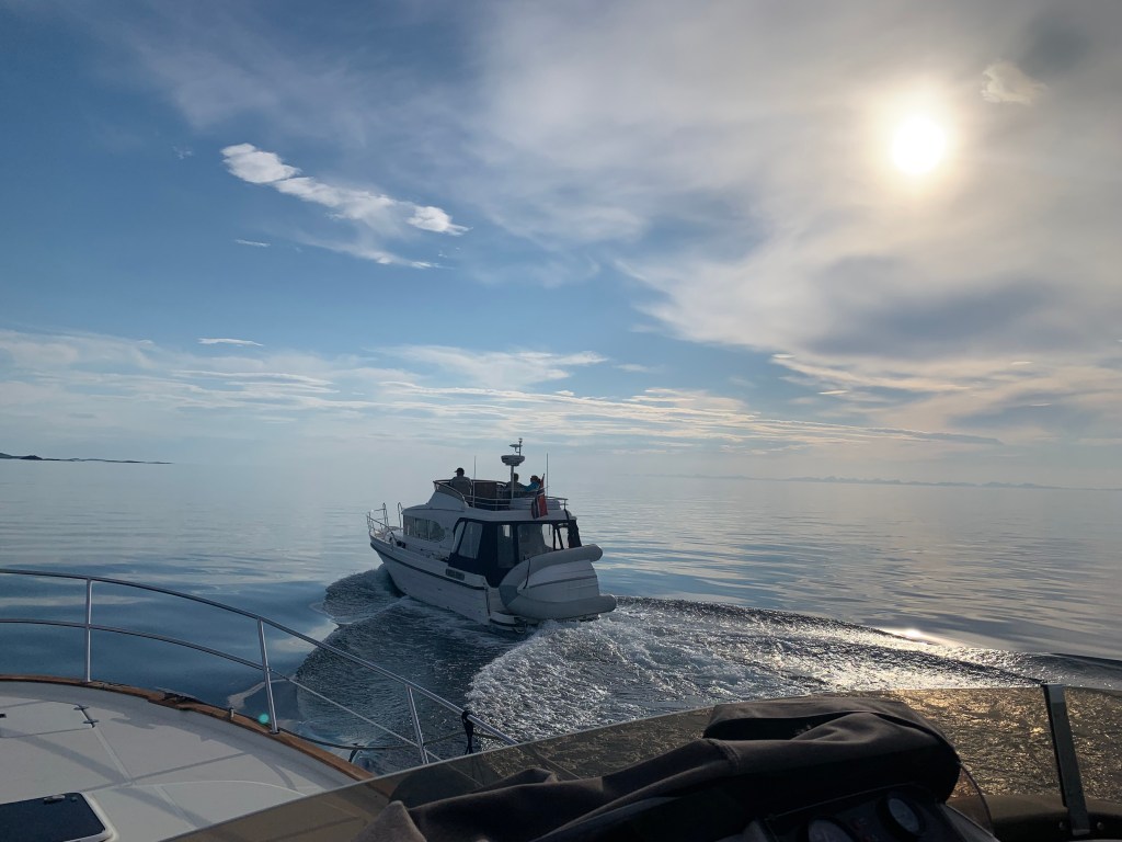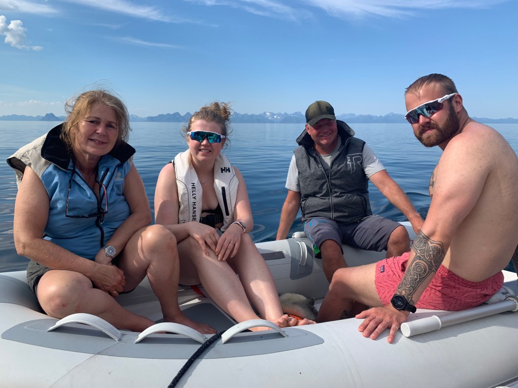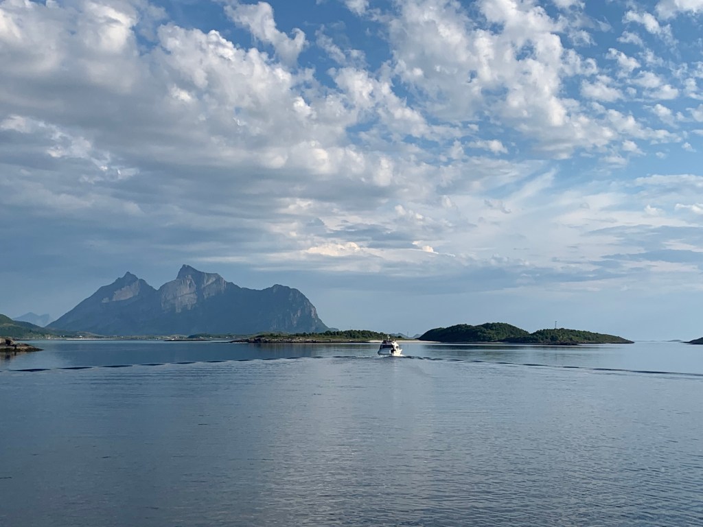 Vel tilbake i båtene, trakk vi ankeret og satte kursen sørover, over speilblankt hav, mot Steigen.