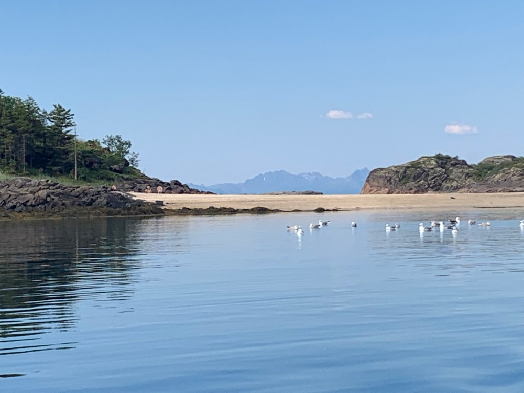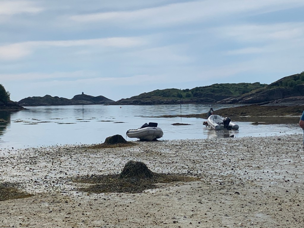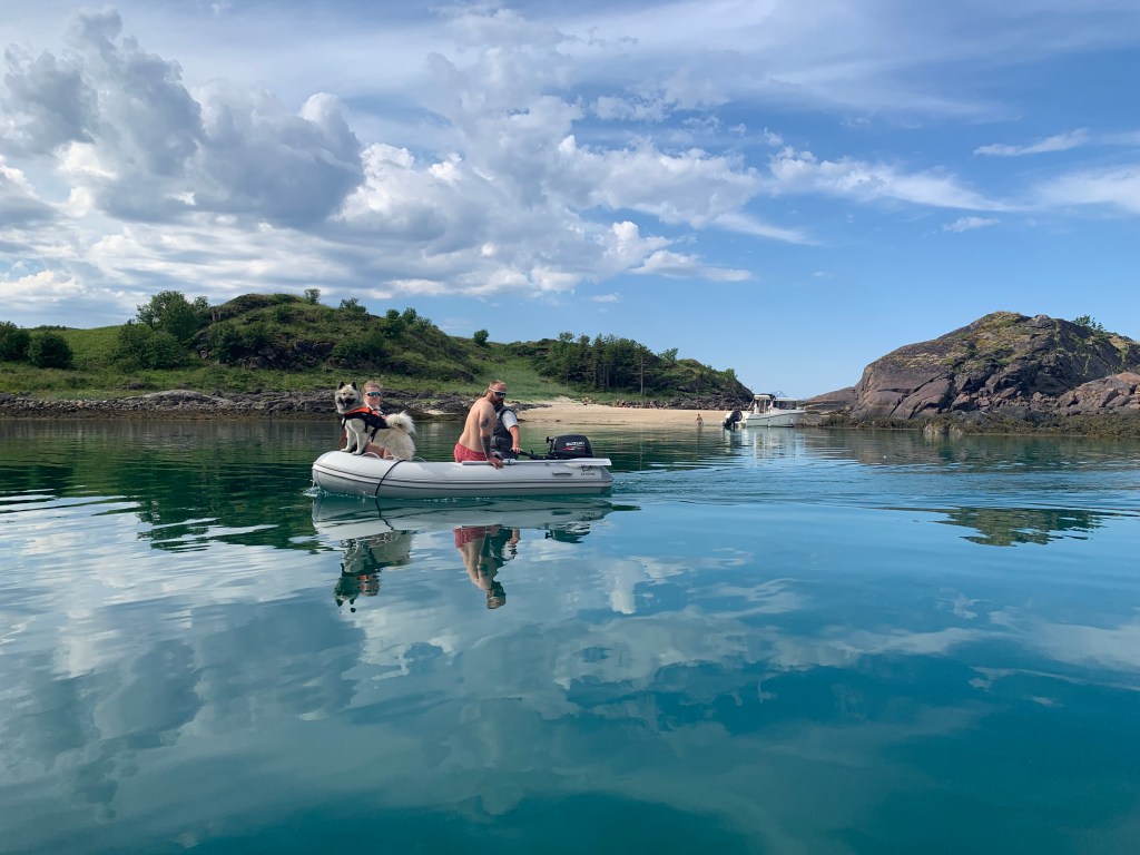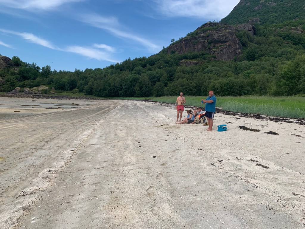 På jolleturen kjørte vi ut i Vestfjorden og til Nordland og Dahlsvær. Her er det vi må kalle ørnens rike. Utallige ørner våket over oss og fulgte oss parvis langs hele turen. Store er de også. Vel framme i Nordland fant vi oss en kritthvit strand og bokstavlig nok strandet på den. Sjøen var på vei til å bli fjære…