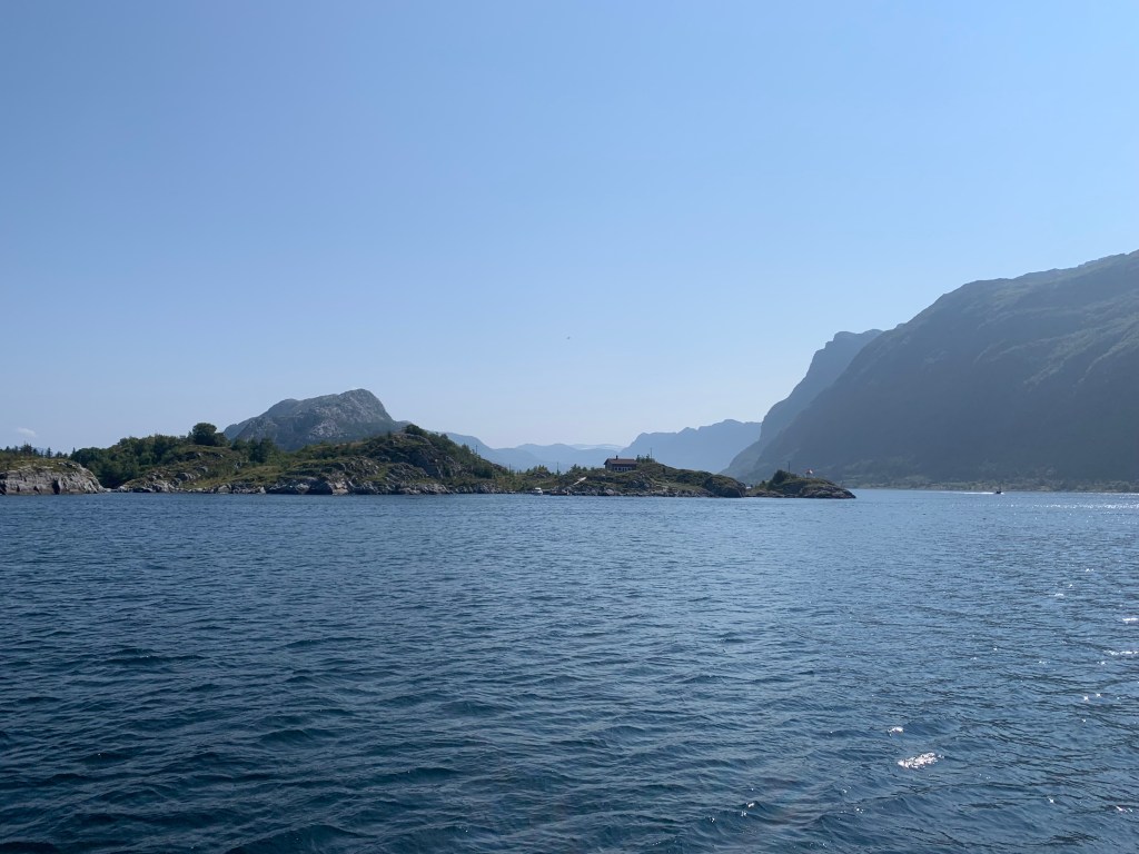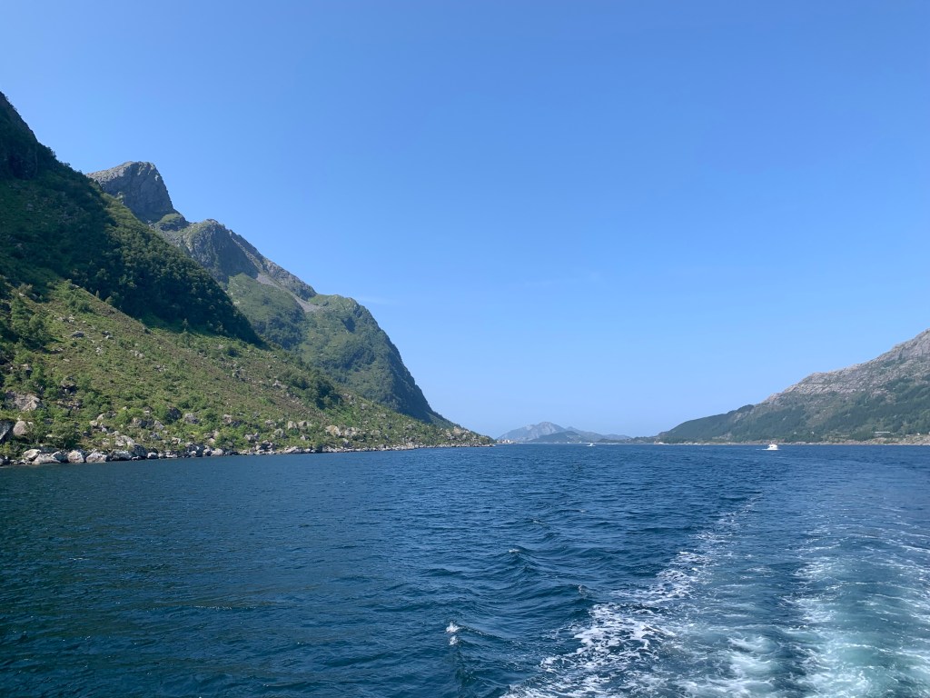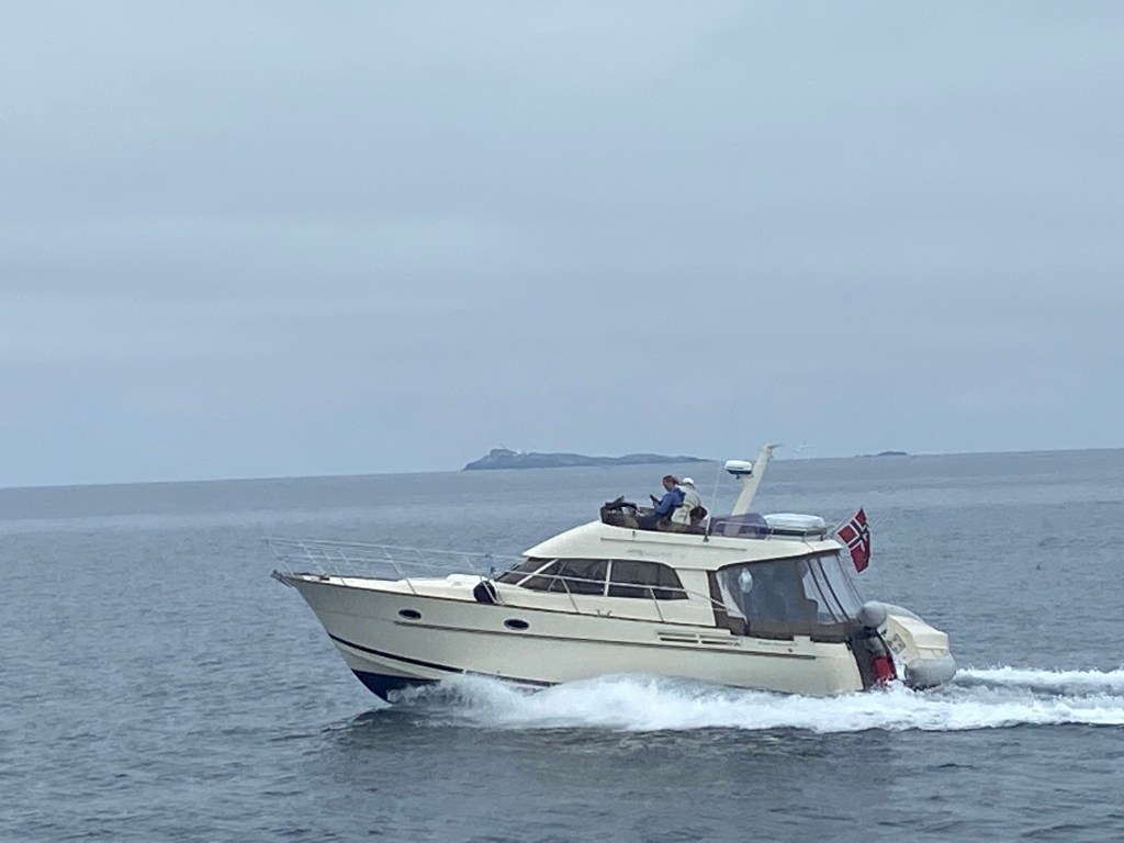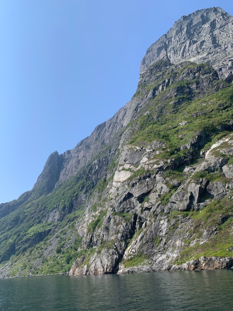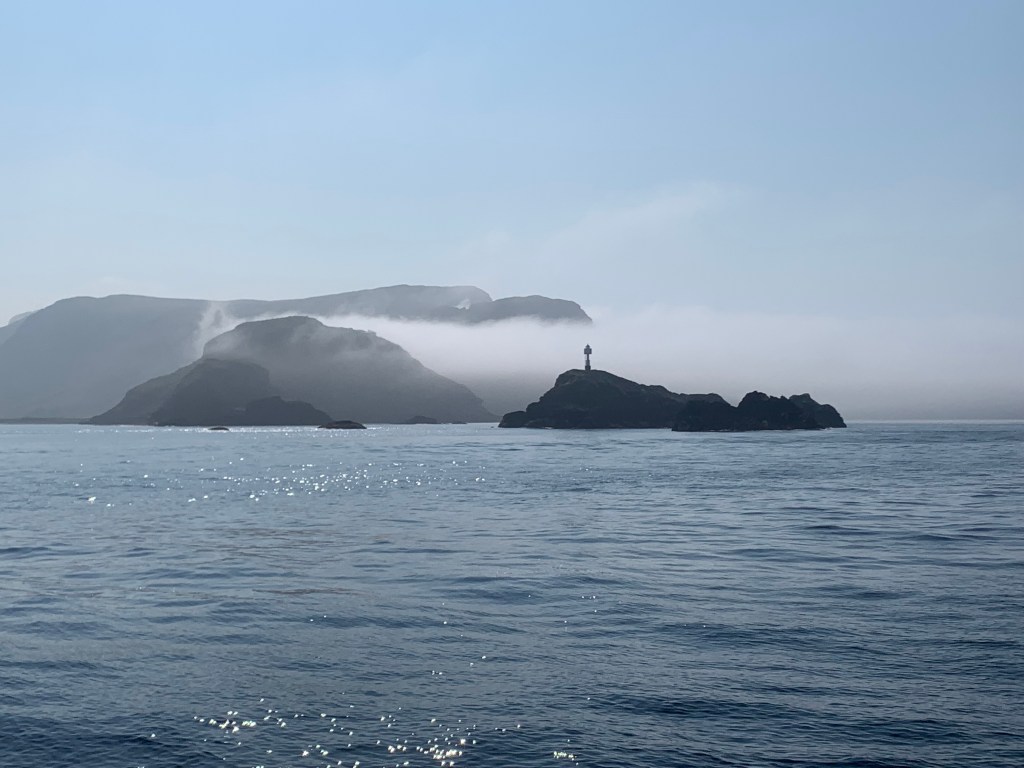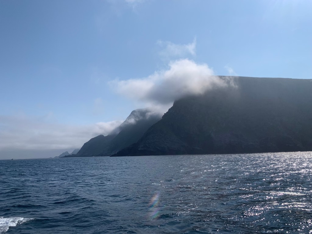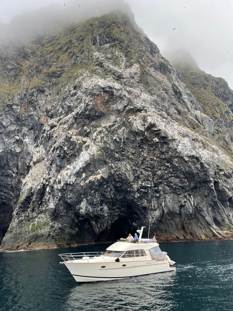 Det første vi gjorde i dag, var å ta turen rundt Runde med båten. Håpet var å få se fuglefjellet fra sjøsiden. Og det fikk vi.