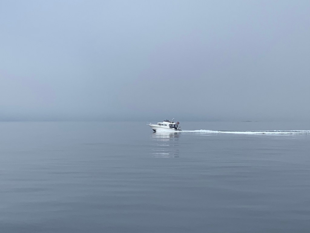 Det var litt trolsk, med sol, og plutselig skodde som kom sigende. Fra Stad til Måløy var det lite natur som kom frem…..men «silkeføre» !