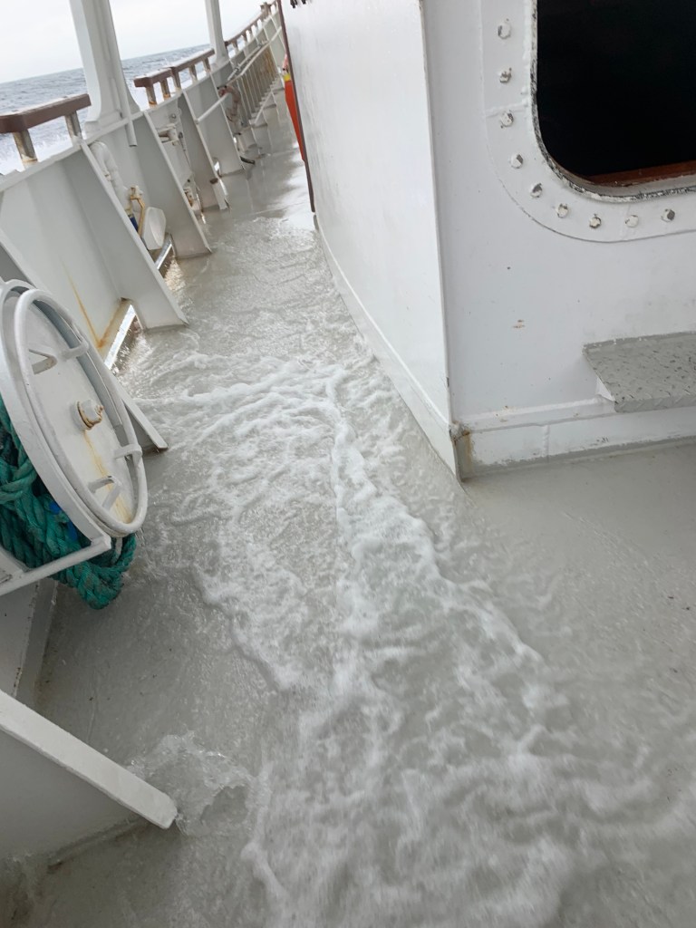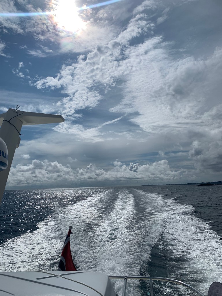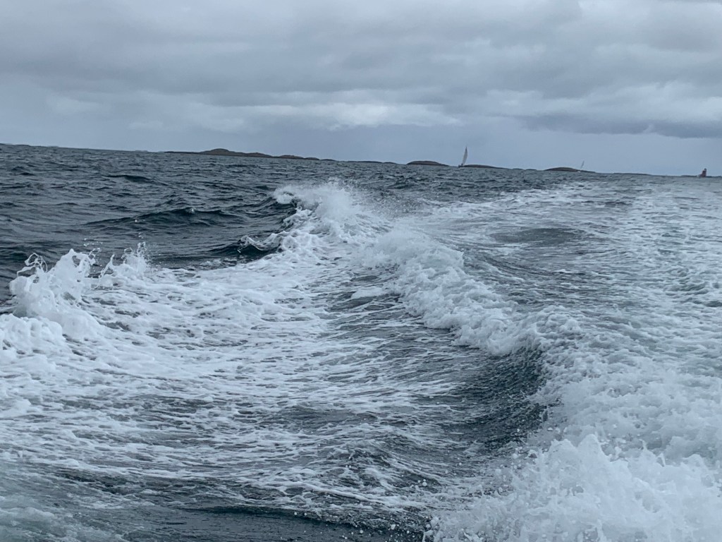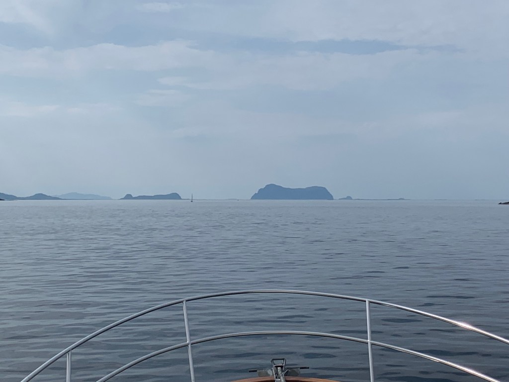 Som så mange andre åpne havstrekk på denne herlige turen, var havet flatt!! Vi har gått over Sletta mange ganger, men den har faktisk aldri vært så rolig som i dag. Vanligvis er det dønninger eller litt bølger, men i dag var den helt flat!!