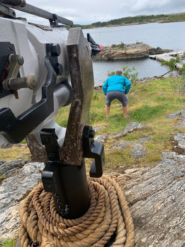 Vi krysset Boknafjorden og gikk inn mellom Rennesøy og Mosterøy. Her traff vi Dagfinn og Linda som hadde feristart og var på vei nordover. Vi derimot var merkelig nær hjemme!!