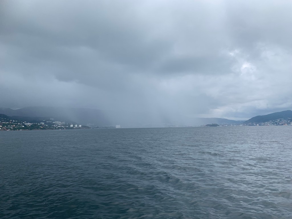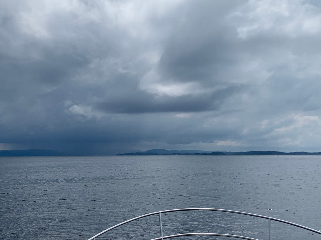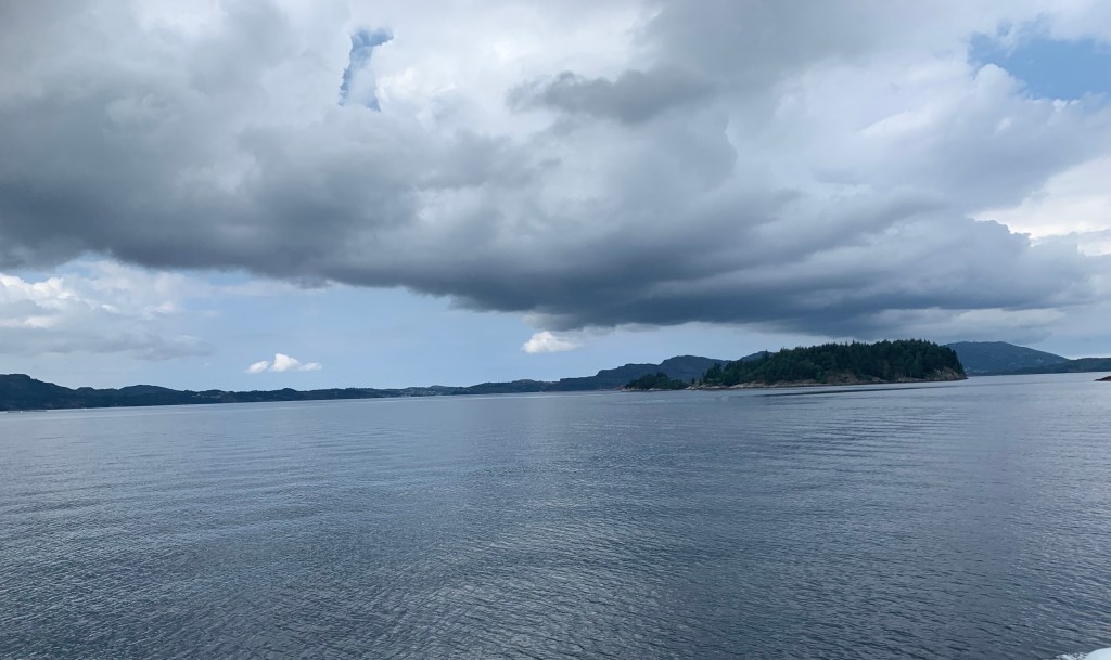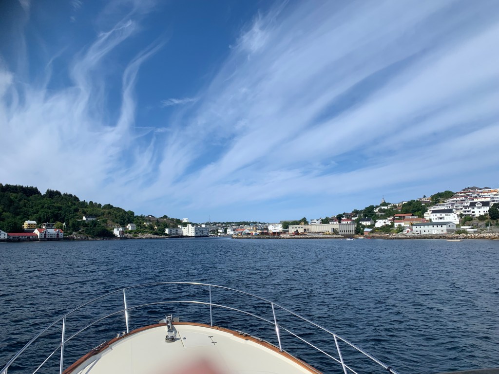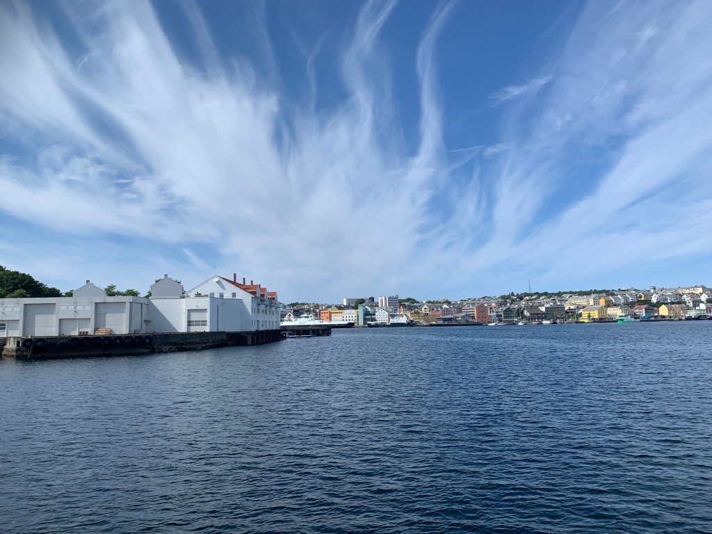 Tenk at vi kunne være så heldige å få se Norges kyst i sitt beste lys. I det vi gled forbi Stavanger, kom det noen få dråper. Det ble med det.