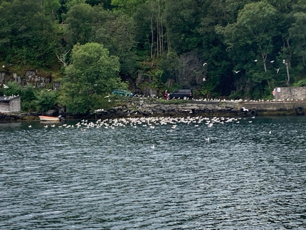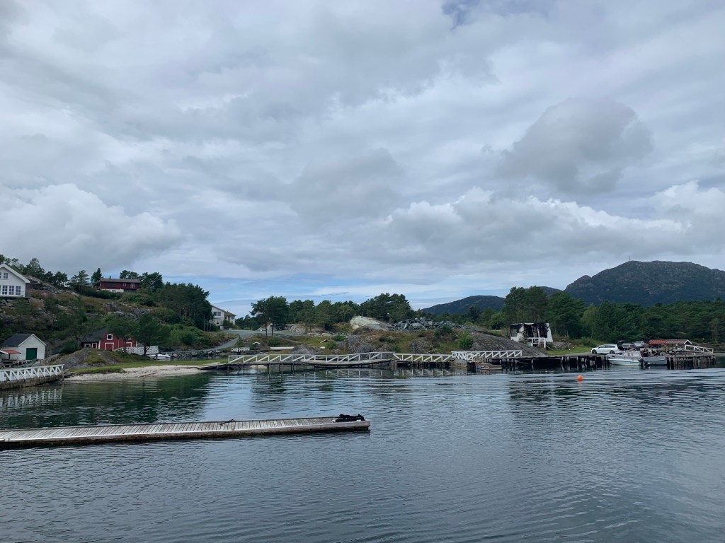 Da vi svingte inn Høgsfjorden, så vi ferja som hadde startet opp mens vi var borte. Lykke!! Uburen lå der akkurat som før og Forsand bare ønsket oss velkommen hjem.