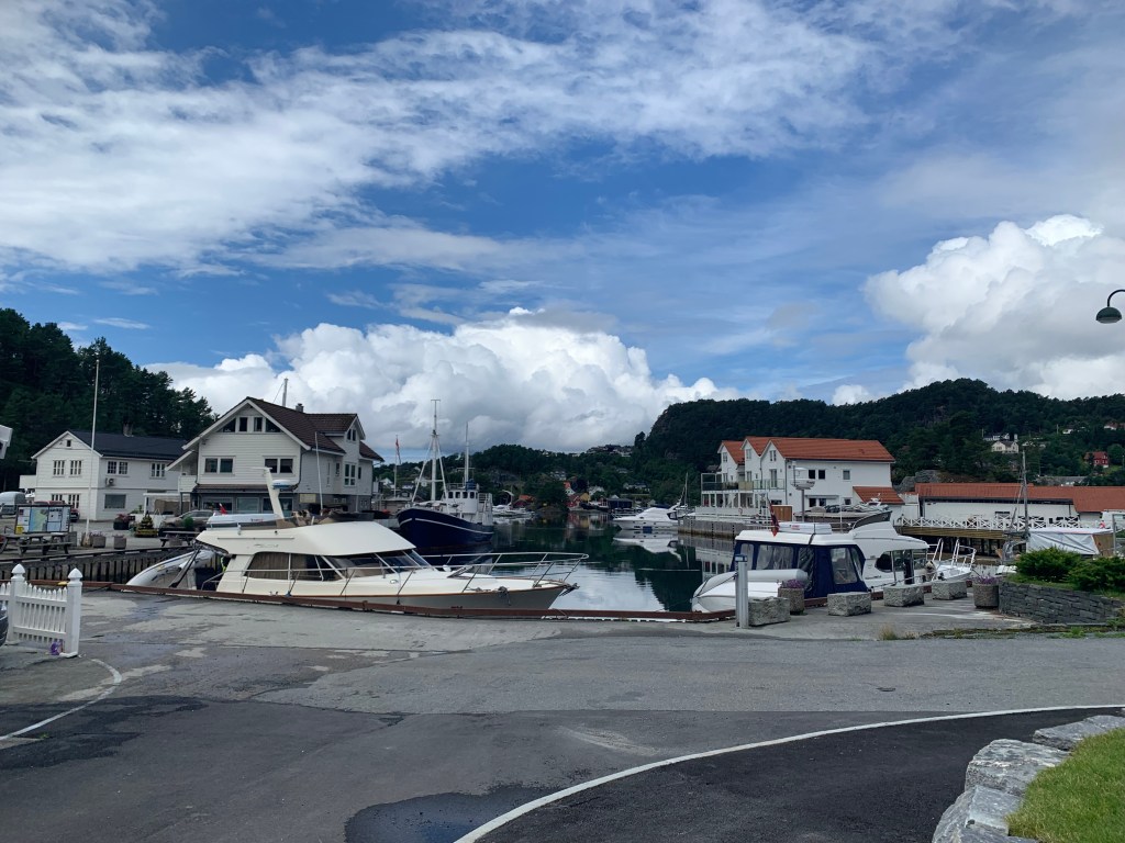 Her var det ny og flott gjestehavn, full av båter. Bygningene var flotte og det var yrende liv.