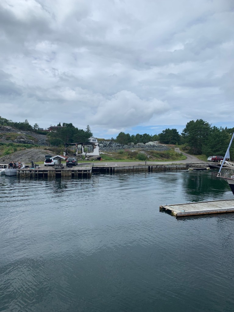 Røyksundkanalen var litt trist å se igjen. Her har vi så gode minner fra mange ferier da guttene var yngre. Her var badeland inne og ute, flotte brygger, strand, kiosk og restaurant. Nå var alle bygg borte. Gjestebryggene lå slitte og delvis ødelagt.