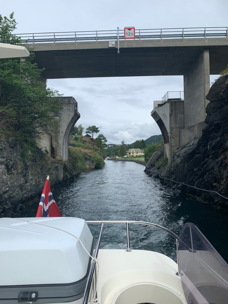 Neste dag tok Kirsti og Yngve oss igjen. Vi reiste sammen videre sørover. Turen gikk forbi vakre Sotra, Austevoll og Fitjar. På Fitjar hadde vi en liten stopp og handlet. Fitjar ligger på Stord. Vi har aldri svingt innom her, verken med bil eller båt. Det har alltid vært Leirvik på vei inn Hardangerfjorden.