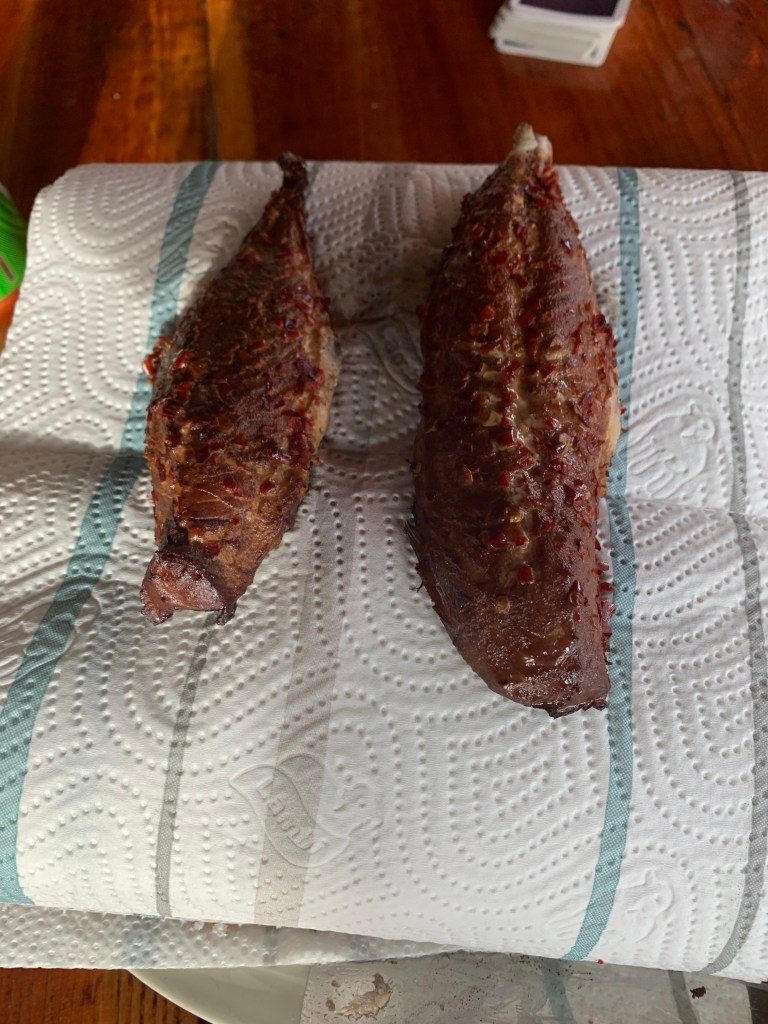 På Bokn, nærmere bestemt Jøsen, ble vi tatt godt imot av Jan Magne og Hild Iren. Vi fikk ligge med båten helt innerst i Loen i Jøsen. Her har de en fantastisk eiendom. De hadde fisket makrell for anledningen og Jan Magne tilberedte varmerøkt chilli-makrell til snacks. Utrolig godt!!