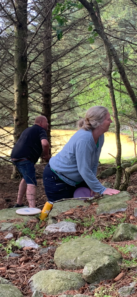 Frisbee-golf banen som sønnen deres hadde laget, ble testet ut. Konkurranse innstinktet slo inn, og vi brydde oss verken om Angus storfeet eller sørpa til slutt!! Det ble en morsom og minnerik opplevelse.