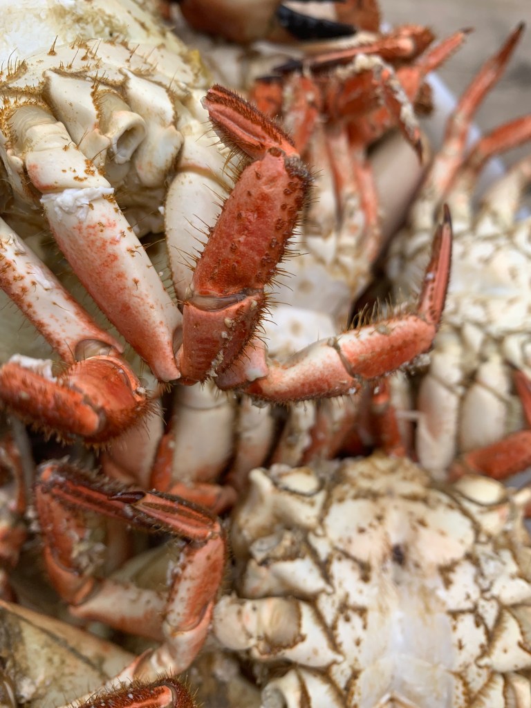 Neste morgen hadde vi oss en god frokost ombord. Jan Magne var ute og trakk krabbe teinene. Før vi reiste videre fikk vi nykokt krabbe, som smeltet på tunga.