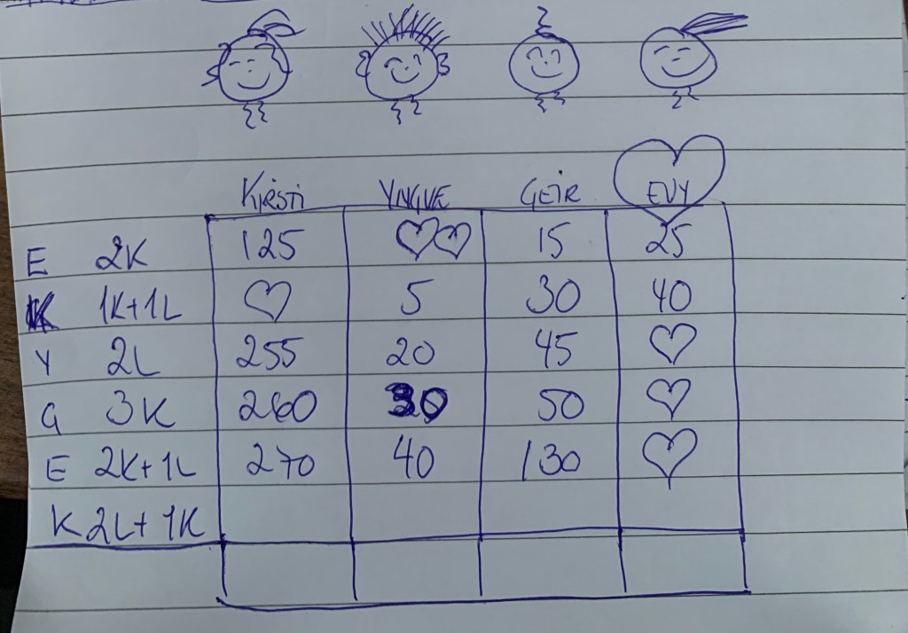 Vi gikk til Sagvåg for kvelden. Her ble det god middag, kortspill og utdeling av siste ukes vandrepokal. (resultat på FB)….